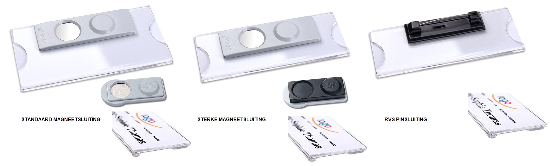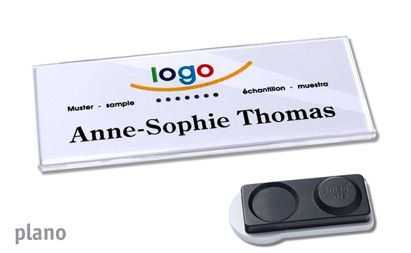 Badge vlak - Plano standaard magneetsluiting - eigen print 75x30 mm (print75x27 mm)